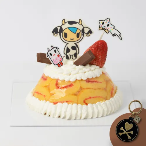 Swiss roll cake with Tokidoki's Mozzarella & Strawberry Milk! Enjoy the delectable creamy tiramisu mascarpone cheese center.