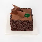 Rich and decadent chocolate fudge cake with walnut chunks.