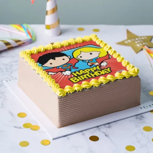 Choice of cake sponge and bettercreme flavour, topped with an edible character icing sugar sheet picture.