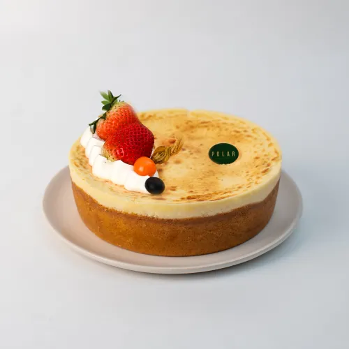 Luxuriously smooth cream cheese filling set on a buttery almond crust, finished with a medley of berries and a delicate apricot glaze.