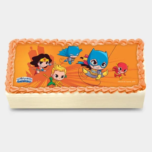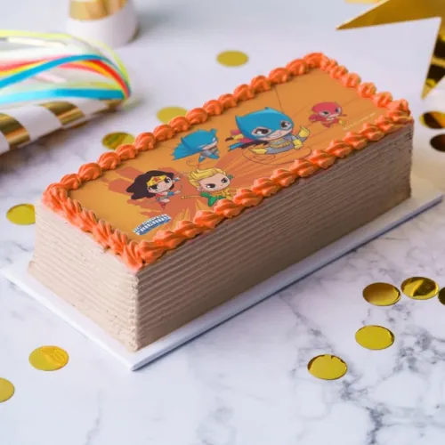 Choice of cake sponge layered with chocolate or vanilla bettercreme, topped with an edible character icing sugar sheet picture.