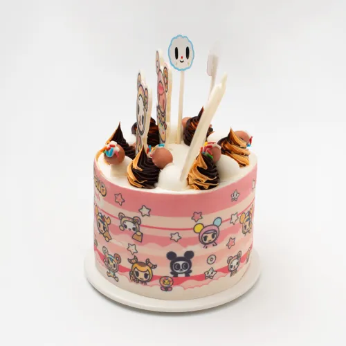 pink cake is cute with an eye-catching decoration, along with soft sponge and