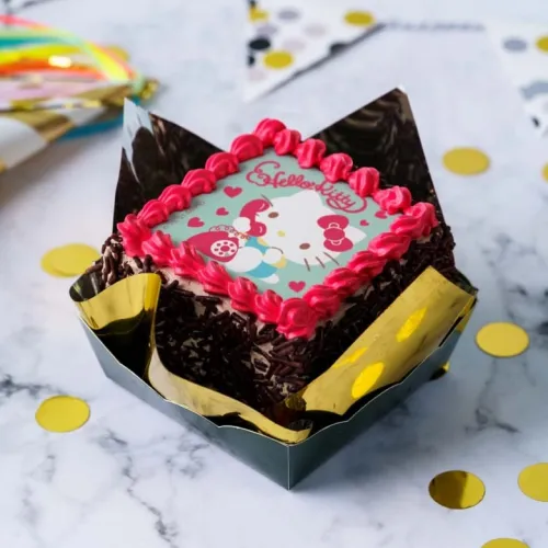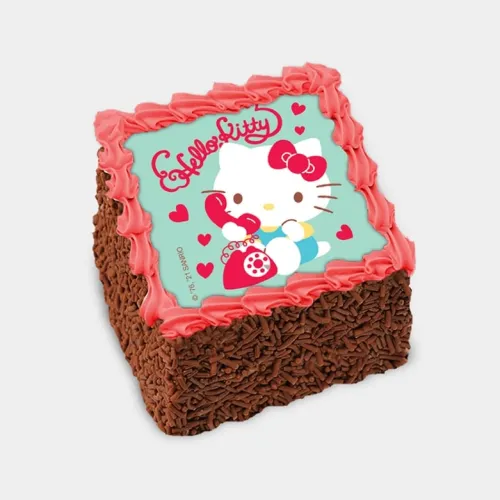Choice of cake sponge layered with chocolate or vanilla bettercreme coated with chocolate rice. Topped with an edible character icing sugar sheet picture.