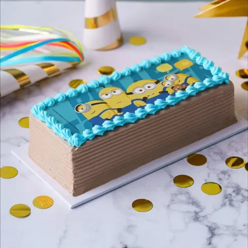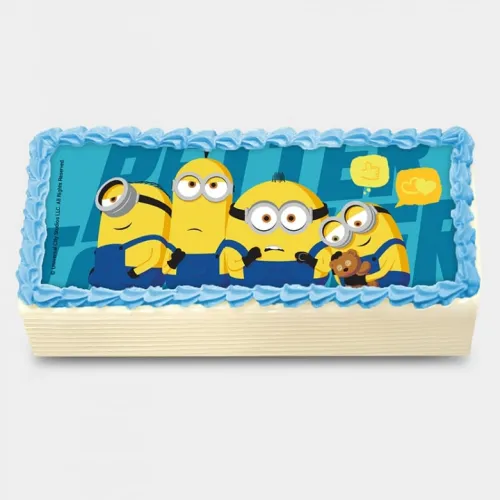 Choice of cake sponge layered with chocolate or vanilla bettercreme, topped with an edible character icing sugar sheet picture.