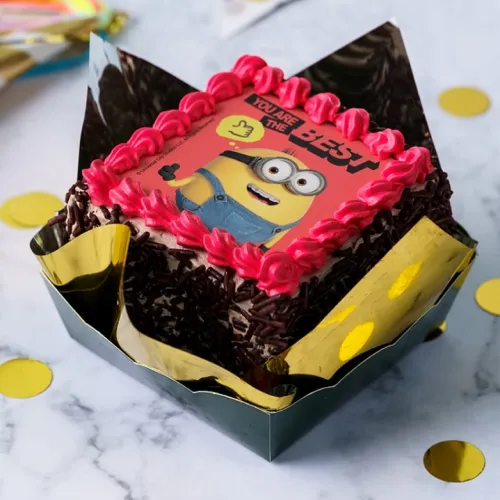 Choice of cake sponge layered with chocolate or vanilla bettercreme coated with chocolate rice. Topped with an edible character icing sugar sheet picture.