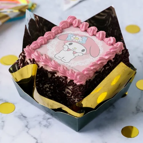 Choice of cake sponge layered with chocolate or vanilla bettercreme coated with chocolate rice. Topped with an edible character icing sugar sheet picture.