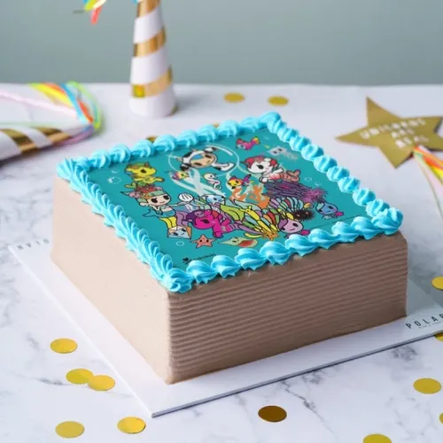Choice of cake sponge layered with chocolate or vanilla bettercreme coated with chocolate rice. Topped with an edibl...