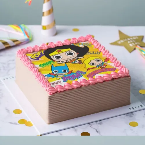 Choice of cake sponge and bettercreme flavour, topped with an edible character icing sugar sheet picture.