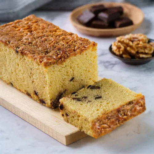 Moist Butter Cake with toasted walnuts accompanies with melty chocolate chips.