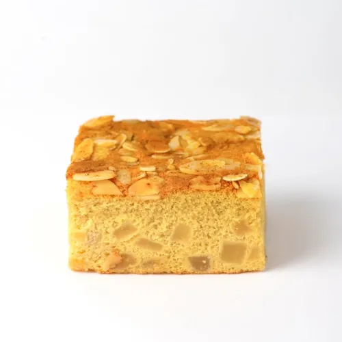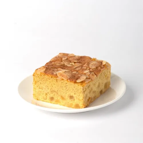 Soft sponge with apple chunks, topped with a sprinkling of cinnamon and sliced almonds - a healthier choice for your cravings.